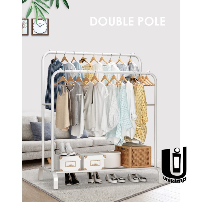 Rak baju besi tingkat 2 ambalan rak sepatu storage standing hanger 827.